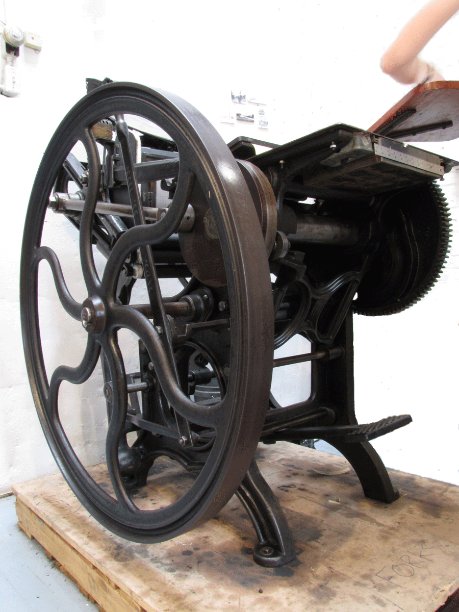 Katydid is a small letterpress printing company that uses a cast-iron press from 1891. Everything starts with a drawing on paper. Each color is printed one at a time on thick, 100% cotton stock, and each piece is die-cut or folded using the press. We thread and package every ornament and gift tag ourselves.